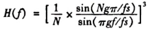 已知工頻耦合噪聲基波頻率為50Hz,因此可以采用模擬或數(shù)字濾波器使濾波器帶寬限制在50Hz以內(nèi)以抑制噪聲。在實際應用中使用 sigma delta模數(shù)轉換器AD74內(nèi)部包含的數(shù)字濾波模塊,數(shù)字濾波器相對模擬濾波器除具有靈活性高、參數(shù)設置方便等特點還可以降低AD轉換期間引人的噪聲。AD774數(shù)字濾波器為(sinr/x)3低通濾波器,其在頻域的傳遞函數(shù)為: