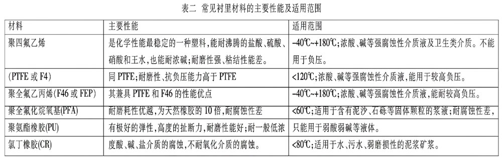 電磁流量計正常工作的基本條件之一,是測量管內壁除電極處外,其它地方的法向電流為零。為滿足這一條件,zui簡單的方法是將導電的金屬測量管內壁和法蘭端面襯以絕緣襯里。通俗地講,用絕緣襯里的目的是防止感應信號電壓被金屬管短路,可見絕緣襯里在電磁流量計應用中的作用十分重要。由于被測測導電介質的流體種類繁多,它們的物理化學特性也不盡相同,不可能用一種絕緣材料的襯里來滿足所有應用電磁流量計的測量流體介質的物理化學特性要求;因此,在襯里材料的選型上,應重點考慮測量介質對襯里的耐溫度、熱沖擊、高壓、負壓、磨損、腐蝕、粘結、附著等方面的要求。下面通過圖表二的方式介紹常見的電磁流量計測量管襯里材料的主要性能特點及適用范圍。