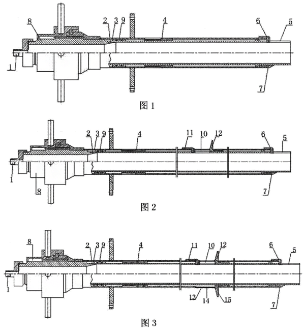 圖中,1-接管咀,2-測量管,3-保護管,4-滑動定位組件,5-末端感壓口,6-**鏟刀,7-第二鏟刀,8-往復直線運動機構,9-滑動密封裝置,10-中間感壓口,11-第三鏟刀,12-第四鏟刀,13-輔助開口,14-靜壓外管蓋板,15-第五鏟刀。