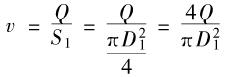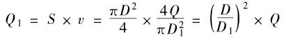 設實際流量為 O ,測量流量為 O1,標定時測量通道直徑為D,截面積為 S ,實際測量通道直徑為 D1,截面積為 S1 ,流速為 "。當流量計測出流量頻率值后,根據標定圖版可換算為流量,此時計算采用的是標準過流通道內徑,瞬時測量流量應為: