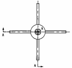 為了實現過油管測量,縮短儀器長度,在設計上可將電磁流量計的一個扶正器設計為井徑測量儀,其 4條扶正片作為4個測量臂。