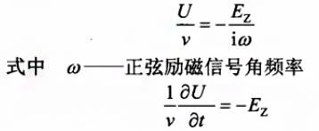 渦電場法的理論基礎(chǔ)為:電磁流量計測量過程中,交變的磁場將伴隨產(chǎn)生渦電場,該電場不受流速分布的影響,通過測量電磁流量計電極所在位置渦電場強度測取一次傳感器轉(zhuǎn)換系數(shù)。當(dāng)一次傳感器管段內(nèi)速度分布平坦時,對于正弦信號勵磁磁場的一次傳感器,有效區(qū)域內(nèi)任意點的速度v、電勢U以及渦電場強度在管段軸向方向的分量Ez具有如式,所示關(guān)系,對于矩形脈沖信號勵磁磁場則如式所示向