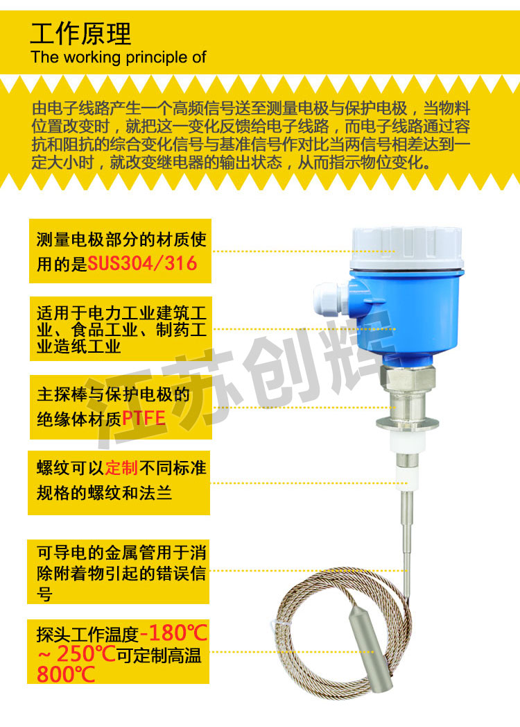 CH-CPDN11R纜繩型射頻導(dǎo)納料位開關(guān):適用于大型罐體和料倉,采用垂直安裝的方式,有效避免物料的側(cè)面沖擊。