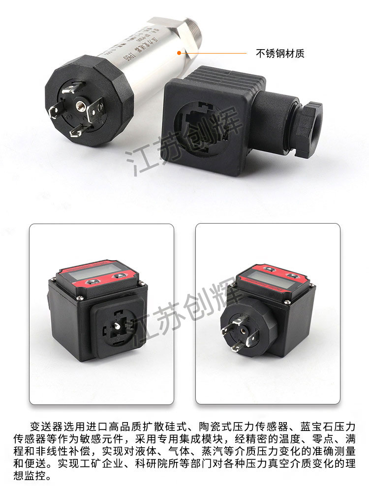 精巧型壓力變送器,采用金屬擴(kuò)散硅傳感器,金屬的延展性、精度及各方面的綜合指標(biāo)是很多其他類型傳感器無可比擬的。傳感器選用美國GE集團(tuán)NOVA公司進(jìn)口壓力傳感器或者M(jìn)ICROSENSOR公司合資壓力傳感器,產(chǎn)品由高精度傳感器和高集成化電子線路及不銹鋼外殼組成。**應(yīng)用于空調(diào)設(shè)備、恒壓供水、自動(dòng)化控制、空壓機(jī)、制冷設(shè)備、水處理系統(tǒng)、液壓系統(tǒng)、工程機(jī)械、發(fā)酵罐過程檢測(cè)等。